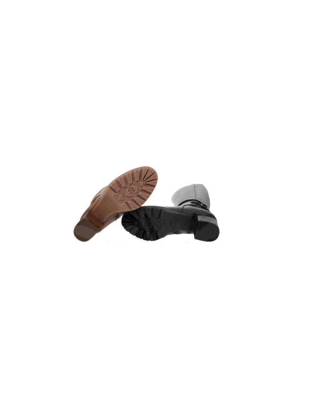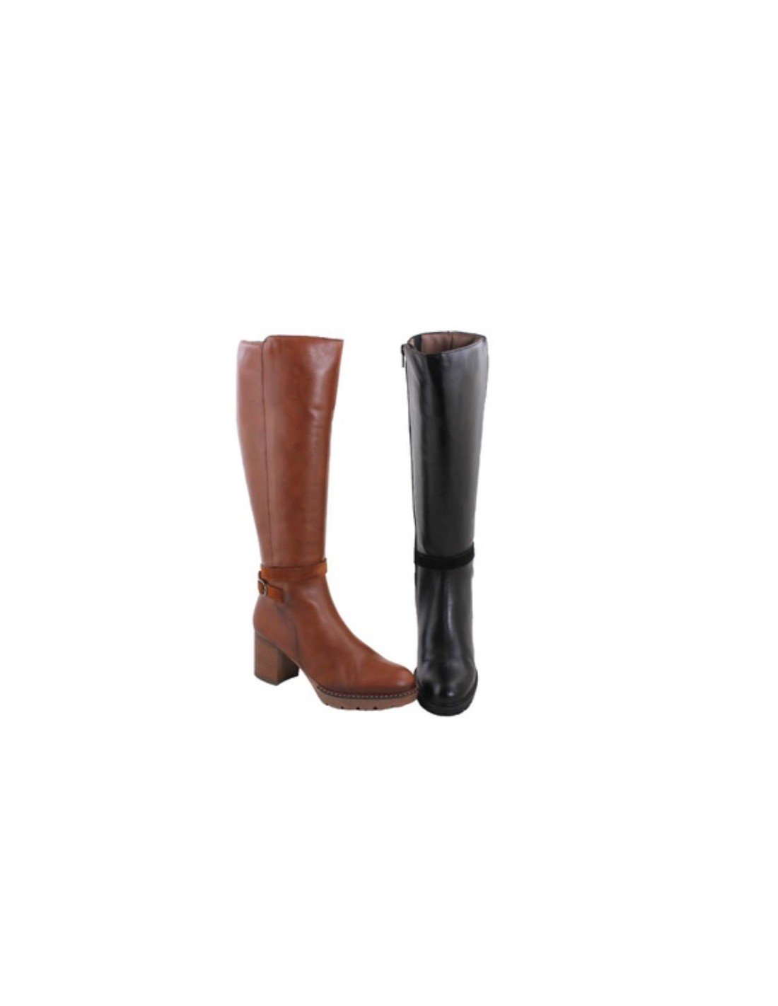 Botas altas mujer piel, con tacón y plataforma de 6 cm, con el corte exterior de piel lisa y corte en la pala y elástico en la parte trasera, plantilla de piel, Color Negro y cuero, Unas botas casual para mujer que se adaptan como un guante al pie, sistema de cierre cremallera, longitud de la caña desde el tobillo 30 cm, Fabricado en Elche, España. Nuevas botas mujer de temporada otoño, inverno.