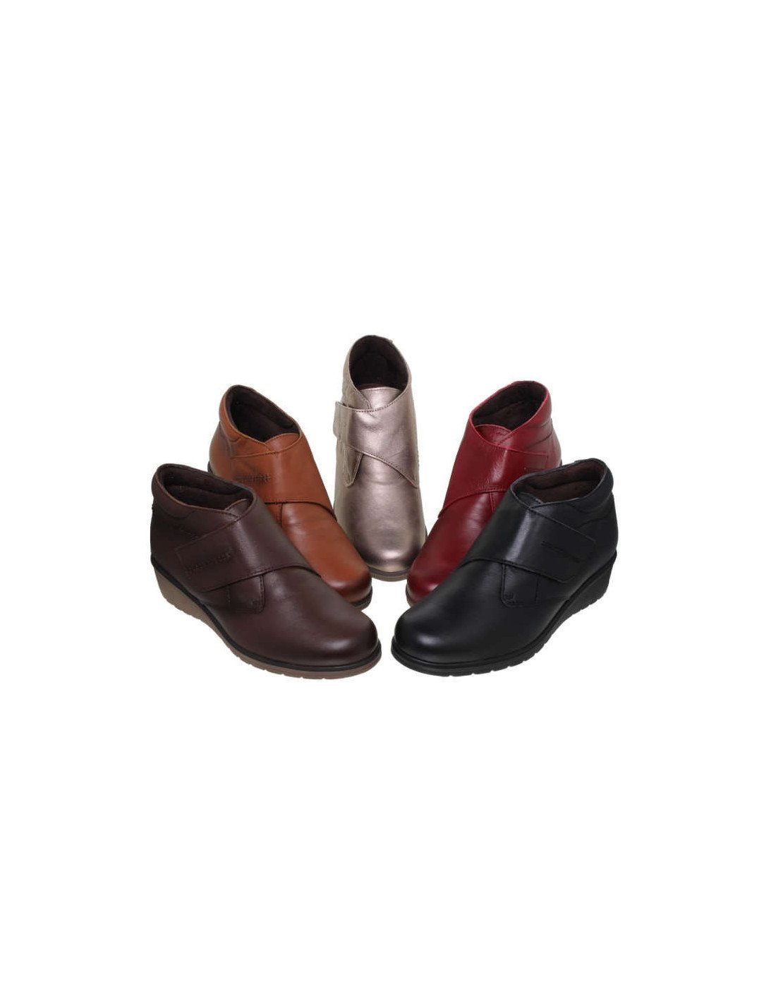 Botines cómodos velcro de piel mujer, material exterior de piel, sistema de cierre con velcro, plantilla extraible textil, unos botines para trabajar, para caminar, para personas que pasan mucho tiempo de pie, son muy cómodos, elegantes y actuales, que se lo puede poner desde la más joven a la más mayor de la familia.