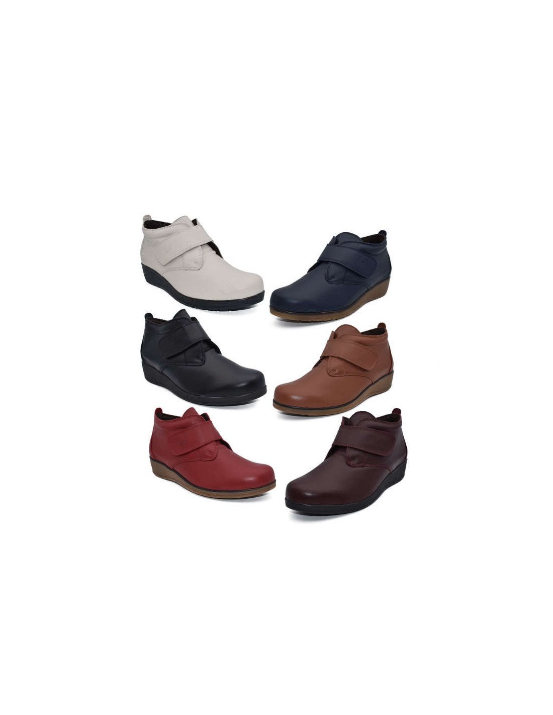 Botines mujer cómodo velcro, unos botines de piel con cuña de 4 cm muy confortable perfecto para caminar, trabajar y muy juvenil, corte exterior de piel, plantilla de piel, sistema de cierre velcro.