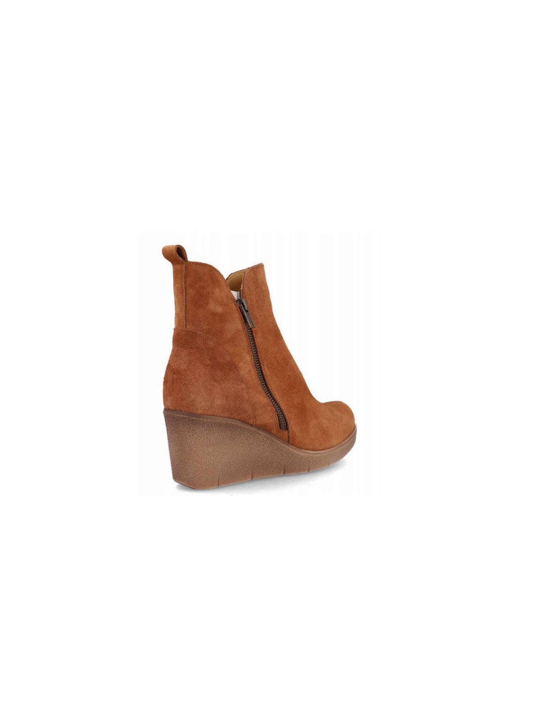 Botines mujer piel suela goma, unos botines de piel vuelta muy elegantes y confortables para mujer con cuña de 6,5 cm, con el corte exterior de piel vuelta blandita y suave , material forro interior textil, sistema de cierre con cremallera, plantilla piel acolchada.