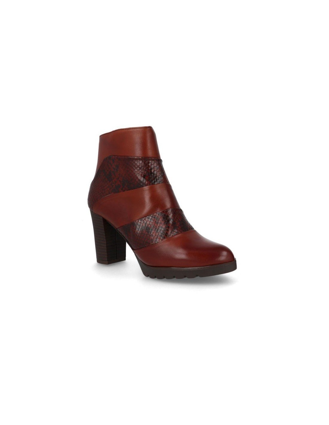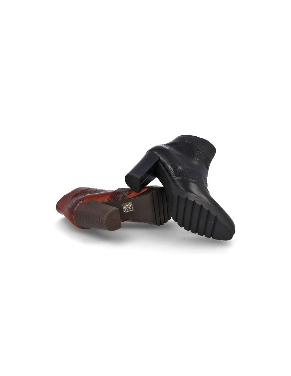 Botines mujer tacón elegantes, unos botines de piel con tacón alto de 8 cm muy confortables, con el corte exterior de piel lisa y piel serpiente, plantilla de piel, Color Negro y cuero, Unos botines que se adaptan como un guante al pie, sistema de cierre cremallera. Nuevos de la temporada otoño, inverno 2020-2021.