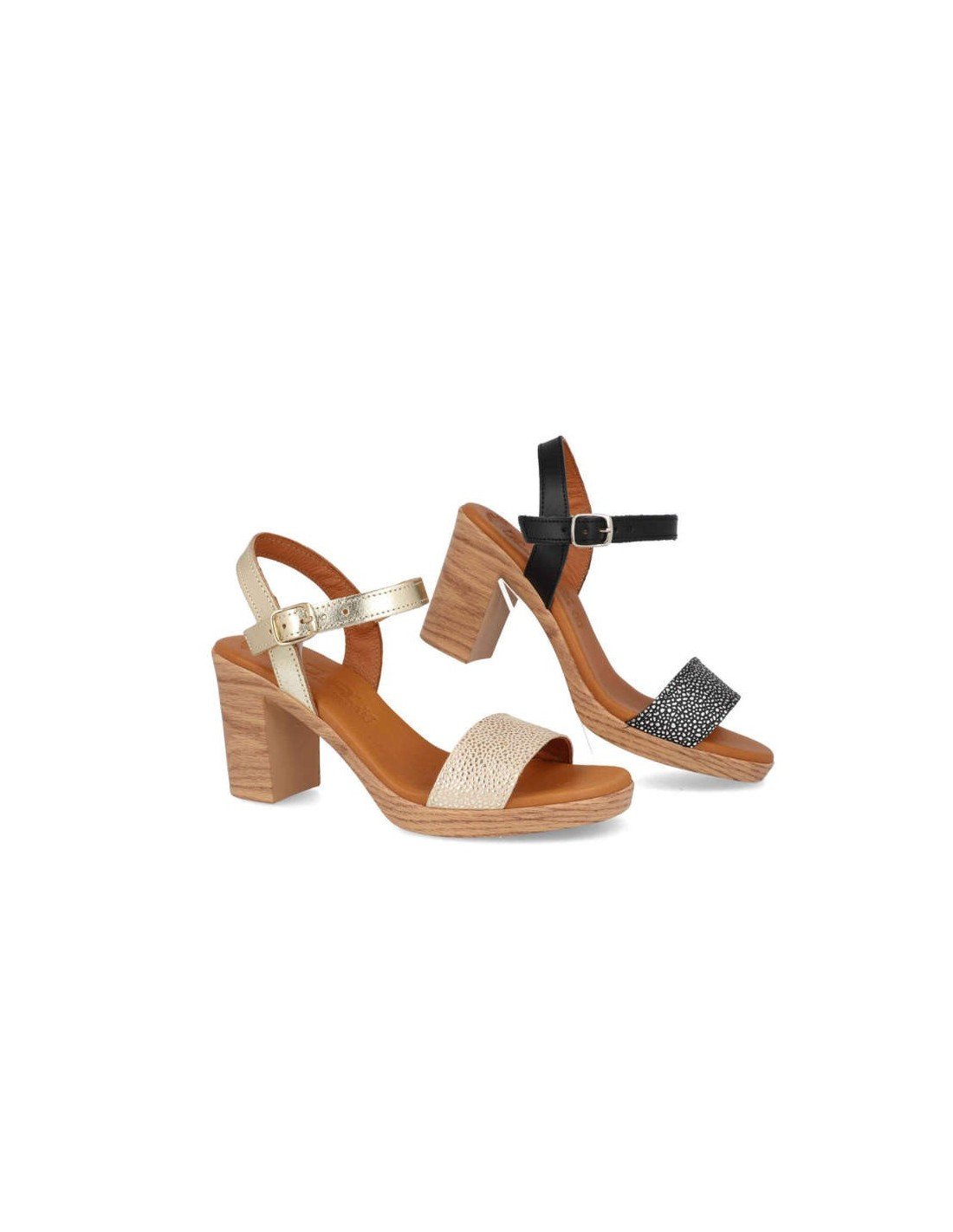 Sandalias mujer tacón vestir, con piel grabada, muy cómodas llevan planta de gel y piel, con tacón y plataforma muy elegantes por su diseño, esta fabricadas en piel con una tira en la pala grabada, van con un collarín cogido al tobillo y fijado mediante una hebilla muy elegante, la piel es blandita que proporciona descanso para nuestros pies.