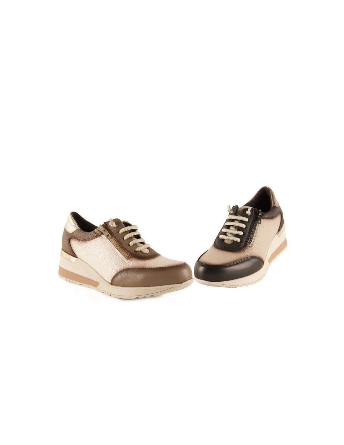 Zapatos mujer casual piel, con plantilla extraible muy cómodas con cuña de 5 cm, un cazado de piel, Son muy cómodas y ligeras, incorpora plantilla textil acolchada extraible, hechas en España, Unos zapatos casual muy juveniles y actuales, con el sistema de cierre cremallera y cordones elásticos tipo mocasín, material interior textil, material exterior de piel, Un calzado de mujer muy confortable y ligero.