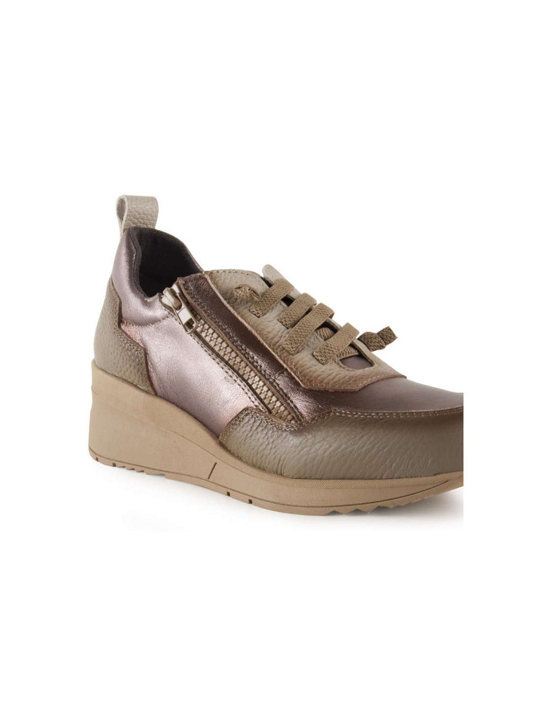 Si quieres vestir a la última te presentamos los nuevos zapatos mujer cuña piel taupe, no dejes de llevar éstas zapatillas casual para mujer que te mostramos, porque no solo las podrás llevar con tus vaqueros favoritos, también las puedes llevar con vestidos y faldas, dándole a tu look un aire urbano y desenfadado.