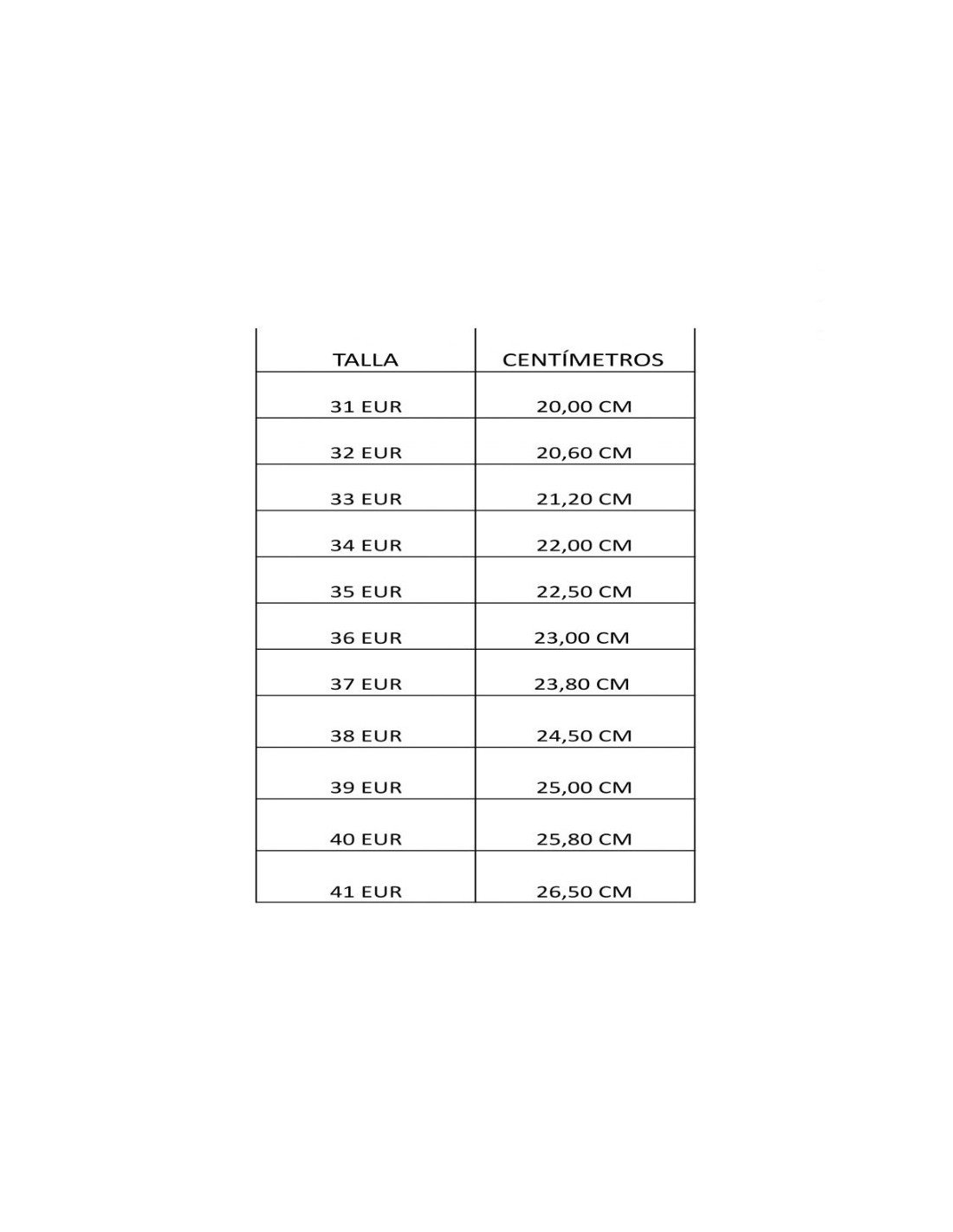 Tallas: 31, 32, 33, 34, 35, 36, 37, 38, 39, 40